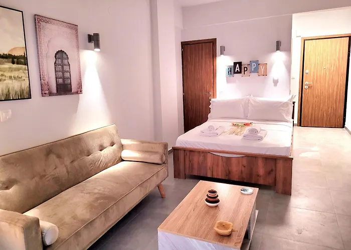 Les hôtes peuvent cuisiner leurs propres repas dans une cuisine complète. Différentes options de restauration, y compris l'Aigli Geni Hamam et le Mitato peuvent être atteintes à moins de 400 mètres. L'arrêt de bus Karipio Melathro se trouve à 5 minutes de marche.